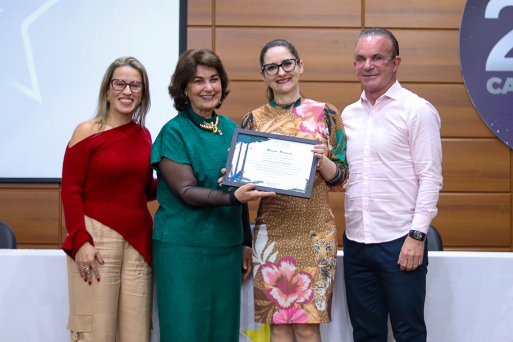 O reconhecimento se estendeu ao nível estadual. A trajetória de um quarto de século do Centro Universitário Campo Real ganhou uma Menção Honrosa e Votos de Congratulações da Assembleia Legislativa do Paraná. A homenagem foi entregue pessoalmente pela deputada estadual Cristina Silvestri, parceira da instituição e grande defensora da educação na região.