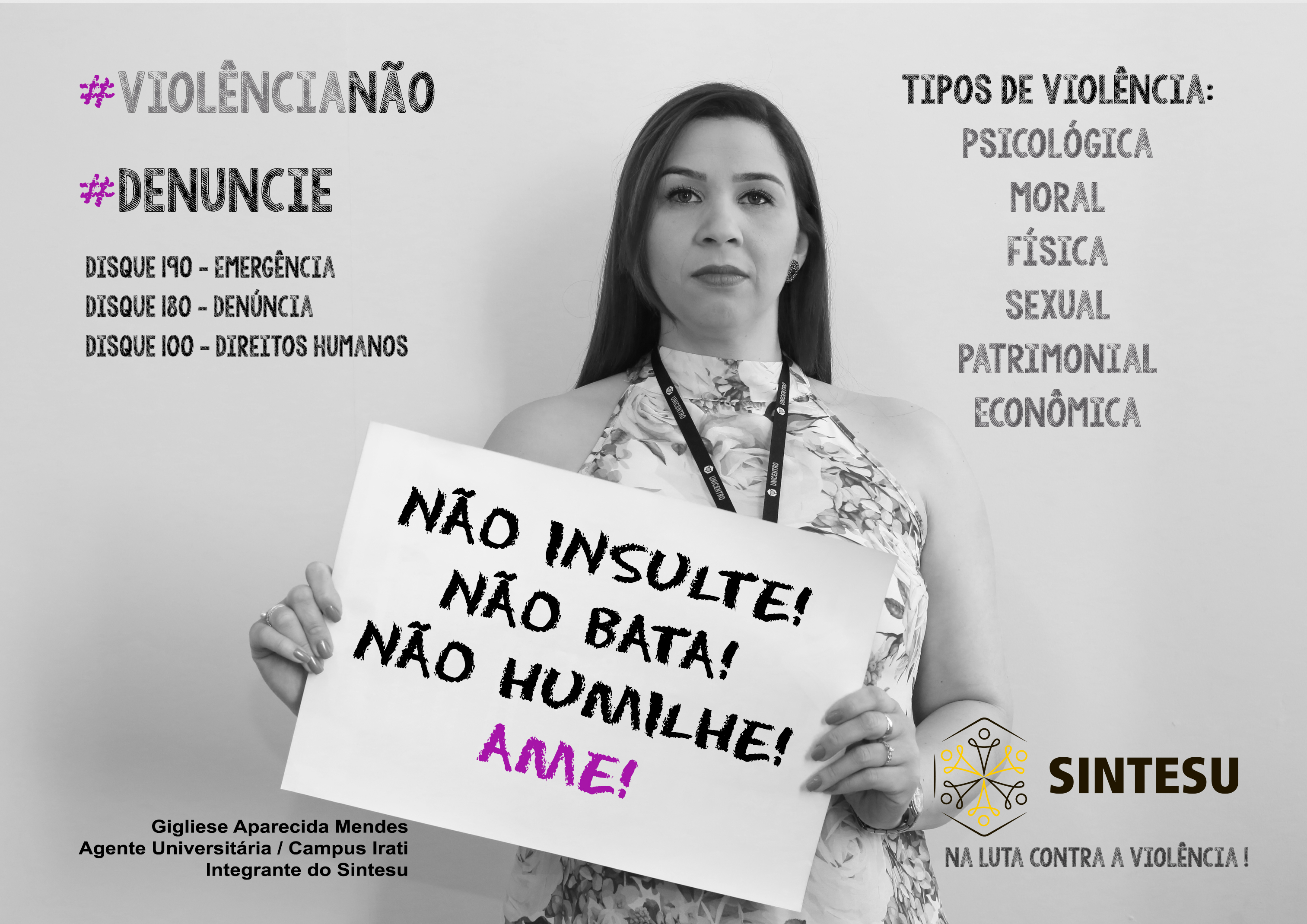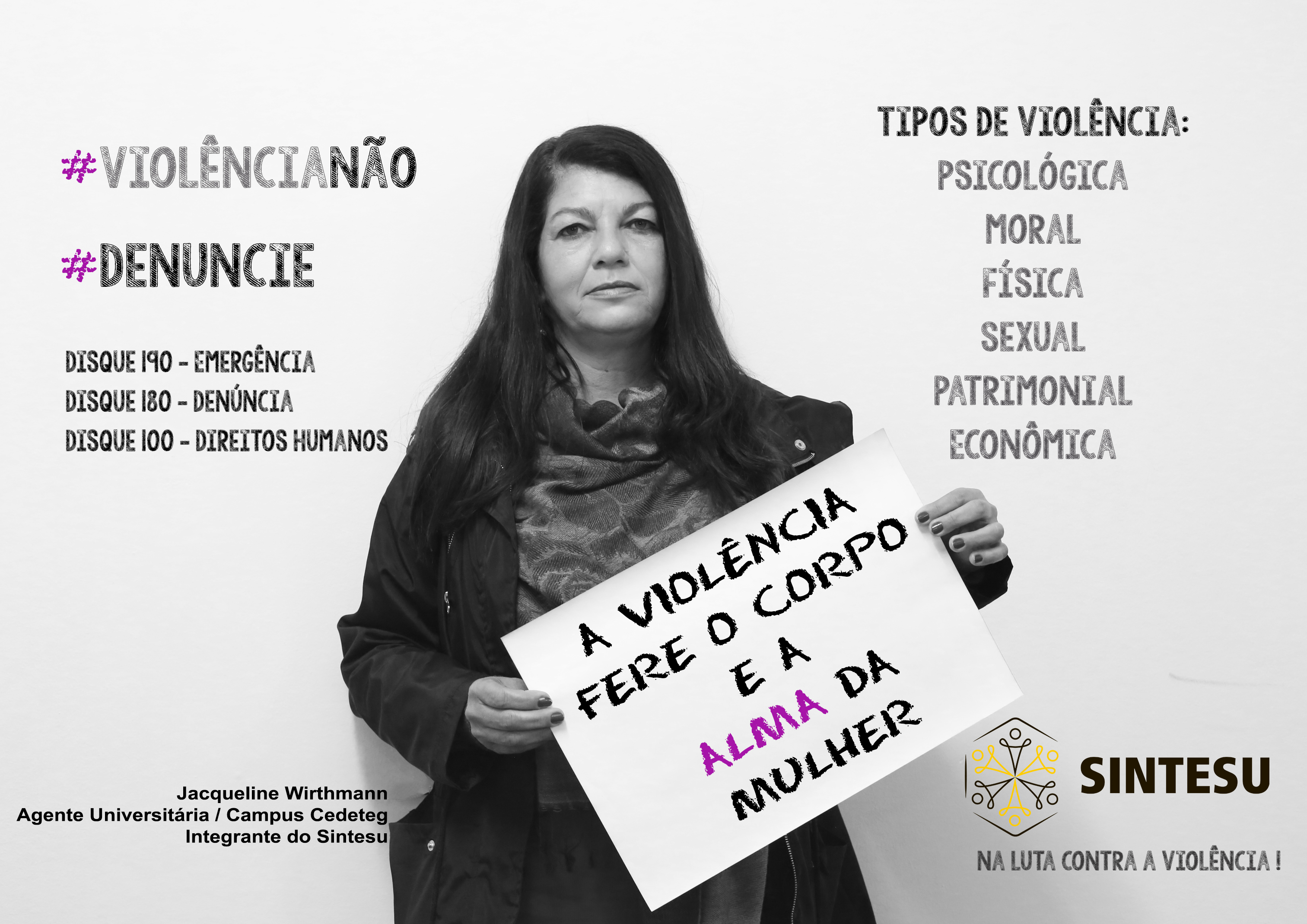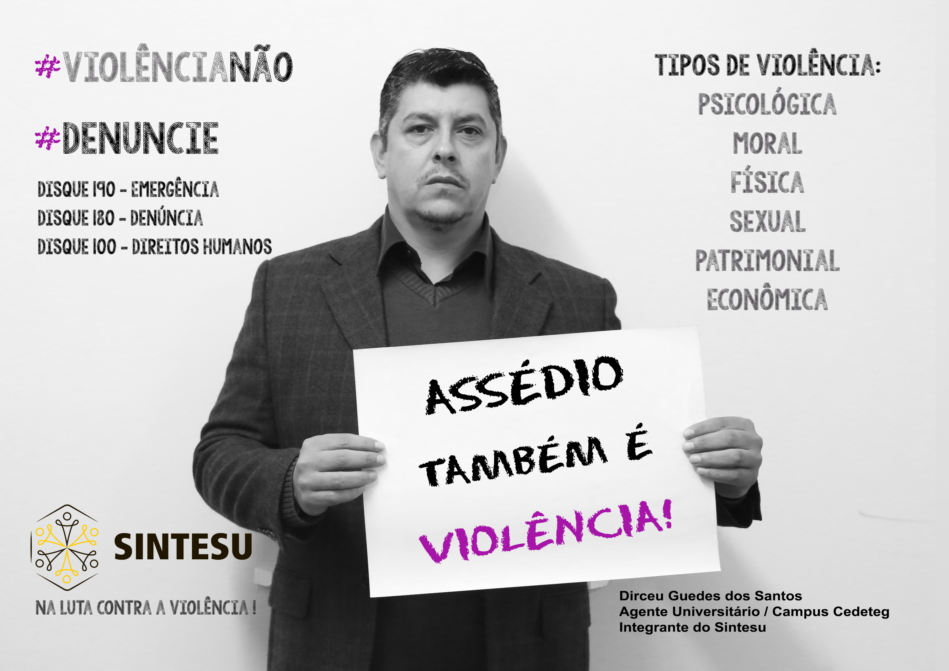 Ainda segundo Danny, também é preciso parabenizar as pessoas que, voluntariamente, serviram de modelo para a campanha. “São servidores e servidoras da Unicentro que representam o pensamento dos filiados ao Sintesu, na luta contra a violência”.