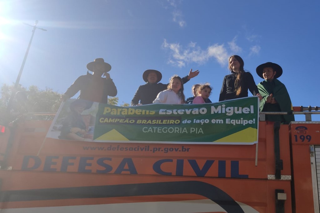 O tradicionalismo de Candói brilhou no 21º Campeonato Nacional de Laço Comprido da Confederação Brasileira da Tradição Gaúcha (CBTG), em Cristalina (GO). Representando o CTG Esteio da Tradição, o jovem laçador Estevão Miguel Pereira Araújo, de apenas 11 anos, conquistou o título de campeão brasileiro na categoria Seleção Piá.
