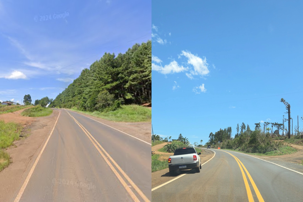 Imagens mostram antes e depois da vegetação que rodeia a entrada do Assentamento Nova Geração (Foto: Thiago de Oliveira/RSN)