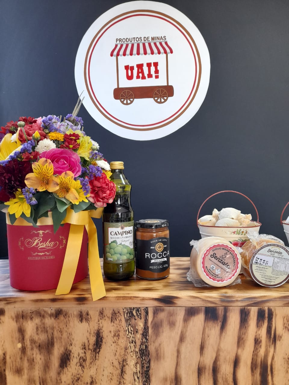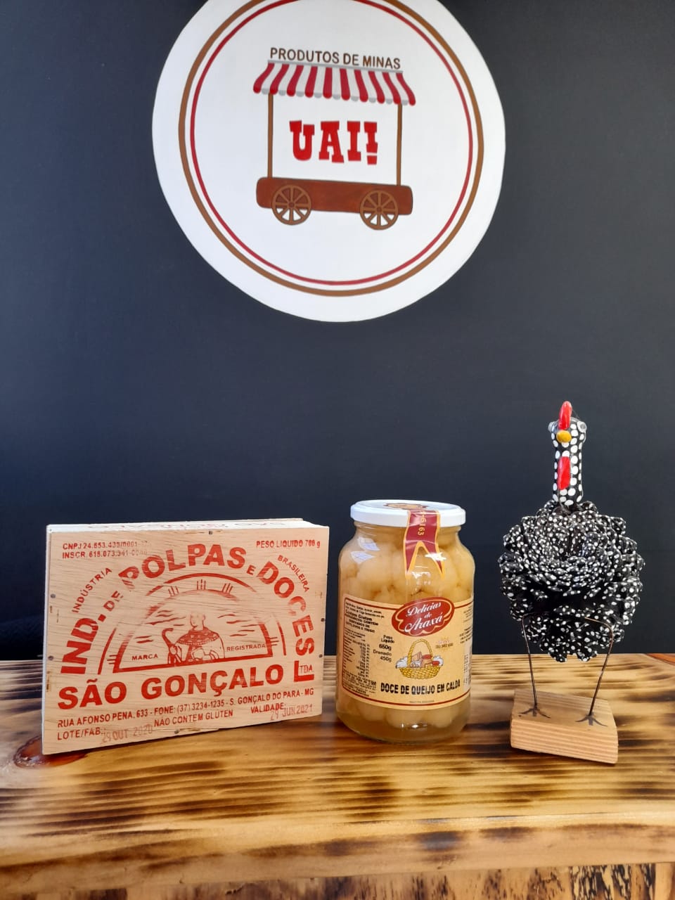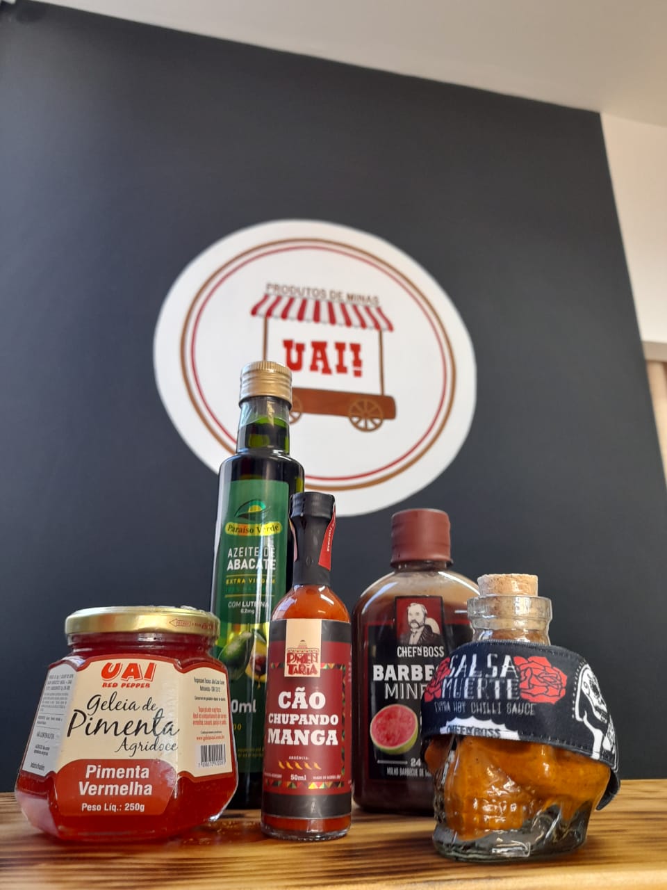 Café do Sul de Minas, doce de leite, sucos, pimentas, queijos e artesanatos chamam a atenção de quem entra na loja. Se a ideia era se conectar com as raízes, como o casal explica, o plano foi bem sucedido, já que oferece também um pão de queijo congelado artesanal feito especialmente pelo mineiro. Assim, levando o sabor de minas para sua casa.