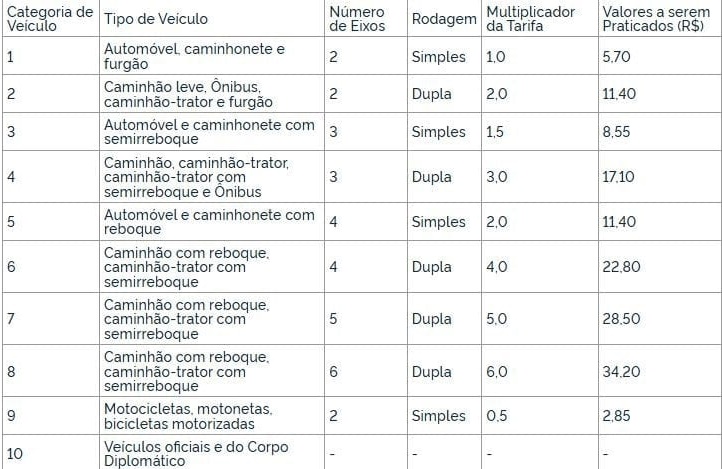 O novo valor é válido nas cinco praças de pedágio localizadas nos municípios de: São José dos Pinhais (PR); Garuva (SC); Araquari (SC); Porto Belo (SC) e Palhoça (SC). De acordo com a concessionária, as rodovias abrangidas são a BR-116/PR (Contorno Leste), BR-376/PR, BR-101/SC e o Contorno de Florianópolis.