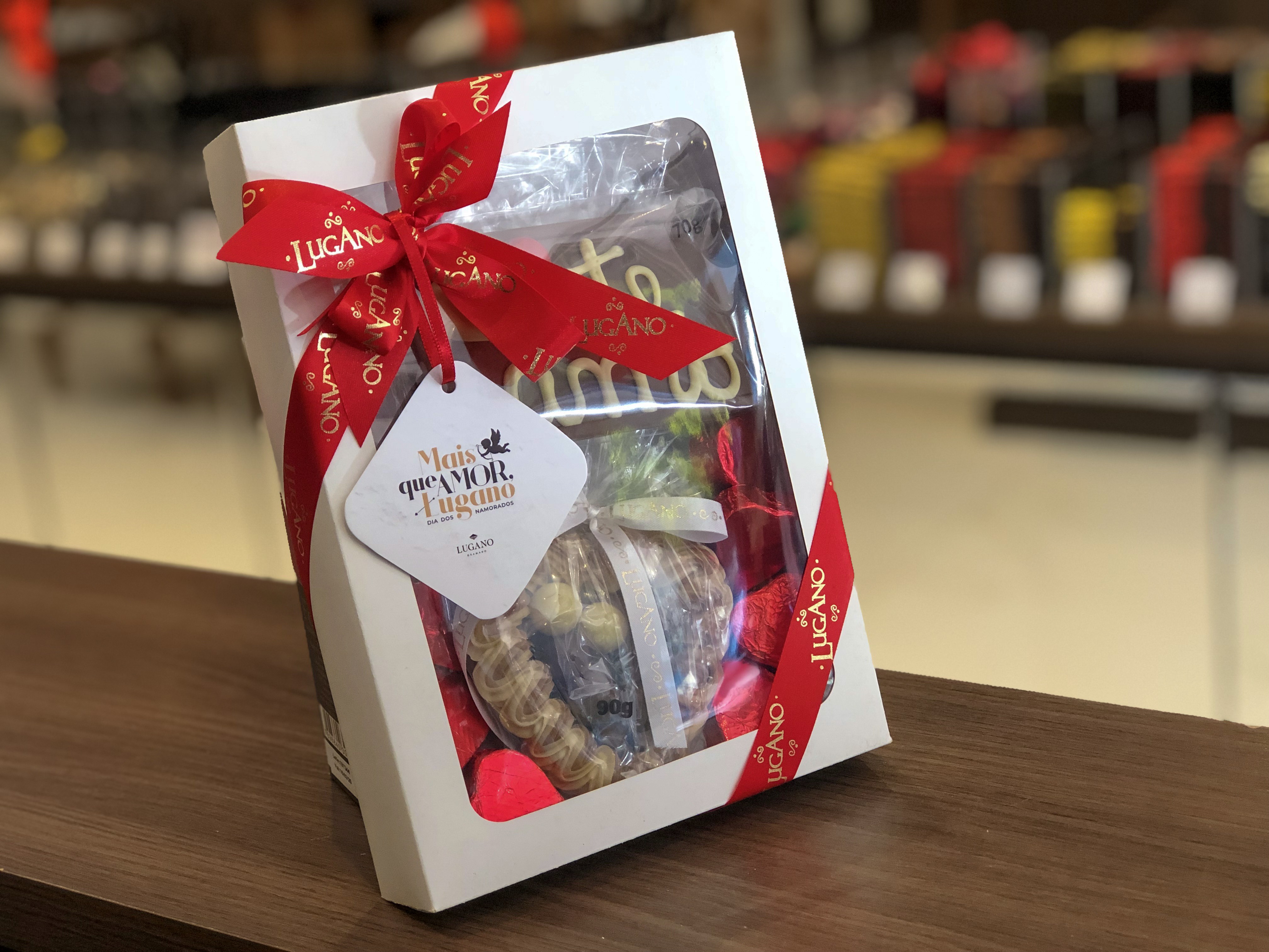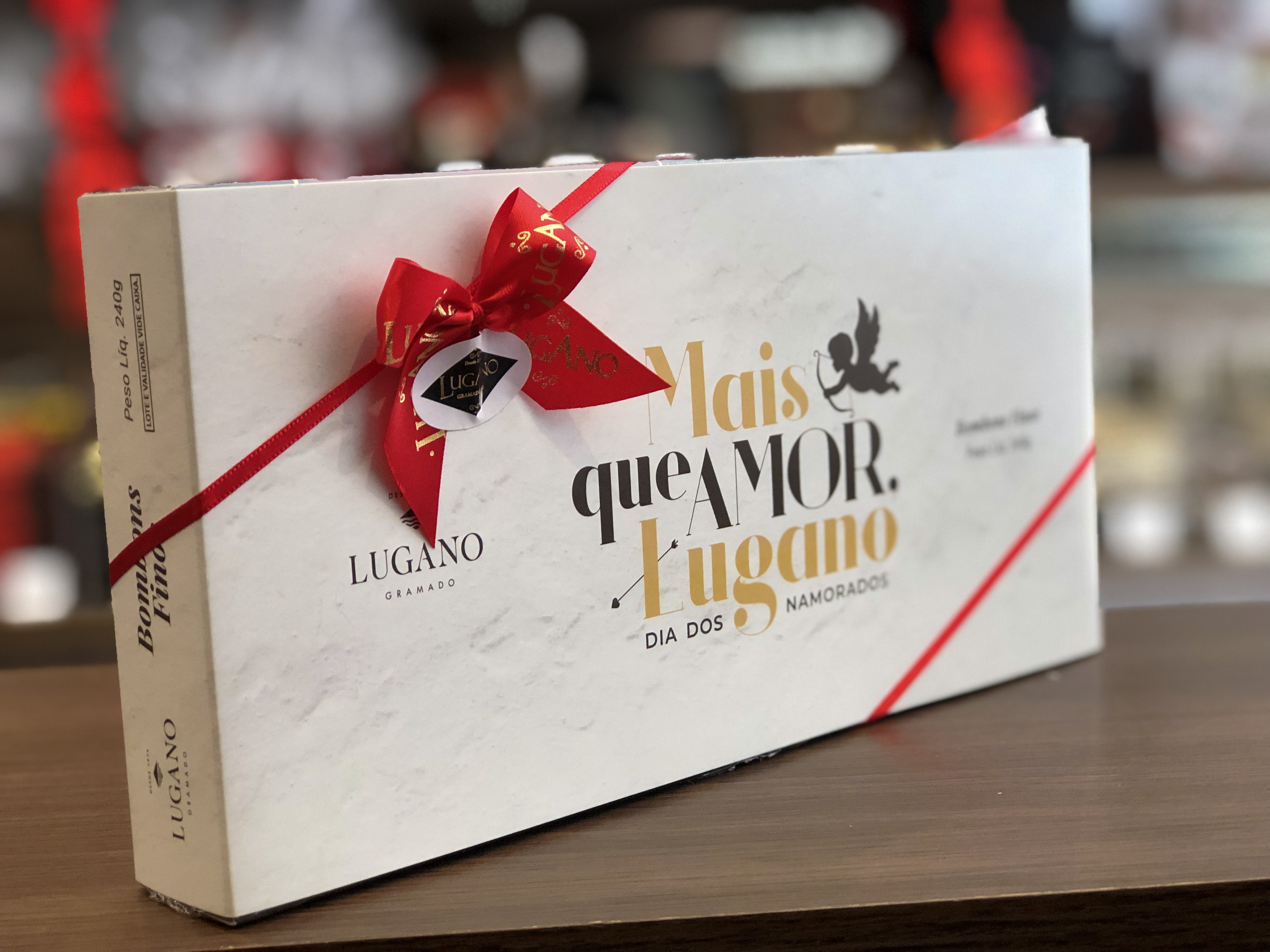 Chocolate é um clássico que nunca decepciona, principalmente em um dia tão romântico. Já imaginou se além das delícias, a caixa vier também com uma foto do casal? Até segunda (10), o cliente poderá personalizar a caixa de bombons finos com uma foto de sua escolha. Basta enviar a imagem pelo instagram @luganoguarapuava.