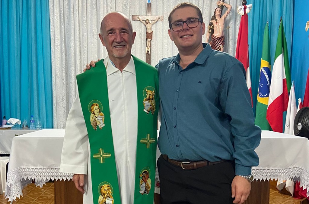 Bruno e o padre Edvino Sicuro (Foto: divulgação)