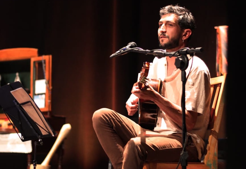 Lucas Sequinel toca os violões e a gaita de 8 baixos, ampliando a cena artística.
