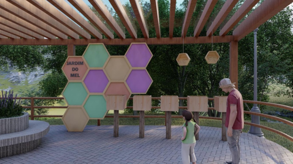 Para isso, conforme o projeto, a estrutura vai contar com o ‘Espaço Educador Sustentável’. Uma sala de aula de 44 m², equipada com projetor para exibição de vídeos educativos, vai focar em conscientizar visitantes e alunos sobre a preservação ambiental. Já, o Jardim do Mel, é um espaço dedicado à polinização. Possui um pergolado coberto, caixas de abelhas nativas e um “hotel” para abelhas solitárias, cercado por canteiros de flores específicas para a espécie.