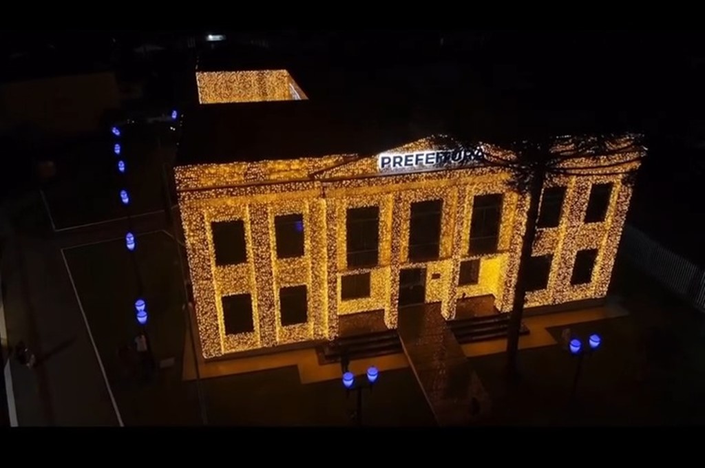 Laranjeiras do Sul ‘veste’ Prefeitura de dourado para celebrar o Natal