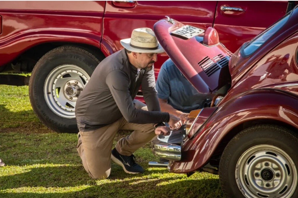Dom Adenis compartilhou as peripécias do Fusca 1986, que precisou de uma reconstrução de motor logo após a compra em Minas Gerais. Sobre a viagem a Guarapuava, ele garantiu: “Viemos em comboio, cinco carros antigos, todos juntos, devagar, respeitando as leis de trânsito”.