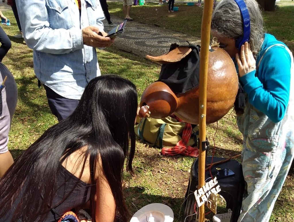 Durante a tarde parte da carava prestigiou a apresentação dos Barbacas na Praça Santos Andrade em frente ao prédio histórico da Universidade Federal do Paraná (UFPR).