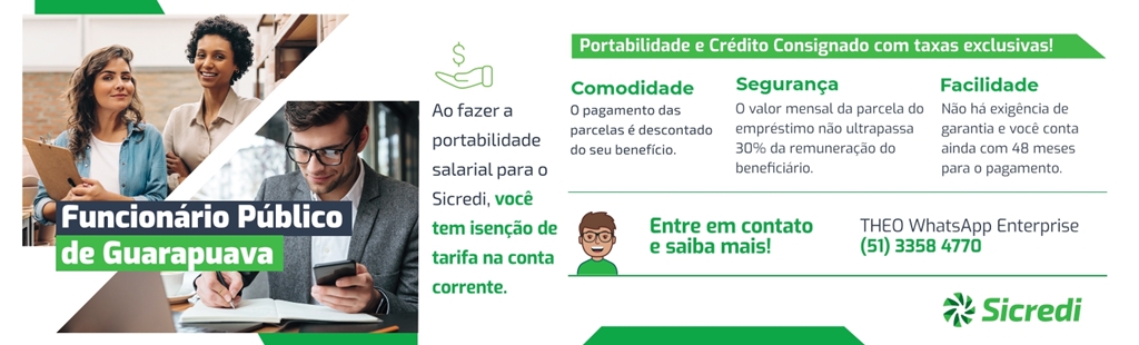 O Sicredi possui condições especiais para funcionários públicos de Guarapuava na contratação de crédito consignado. Além da portabilidade salarial, ao trazer o salário para o Sicredi, o associado tem isenção de tarifa na conta corrente. Bem como o acesso ao aplicativo, cartões de débito e crédito e um atendimento personalizado pelo gerente de conta.