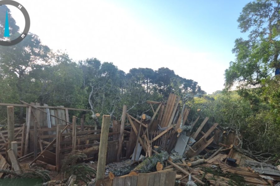 Em Turvo, 10 famílias tiveram as casas destruídas, duas com perdas parciais. Ocorreram 16 interdições de estradas rurais por queda de árvores